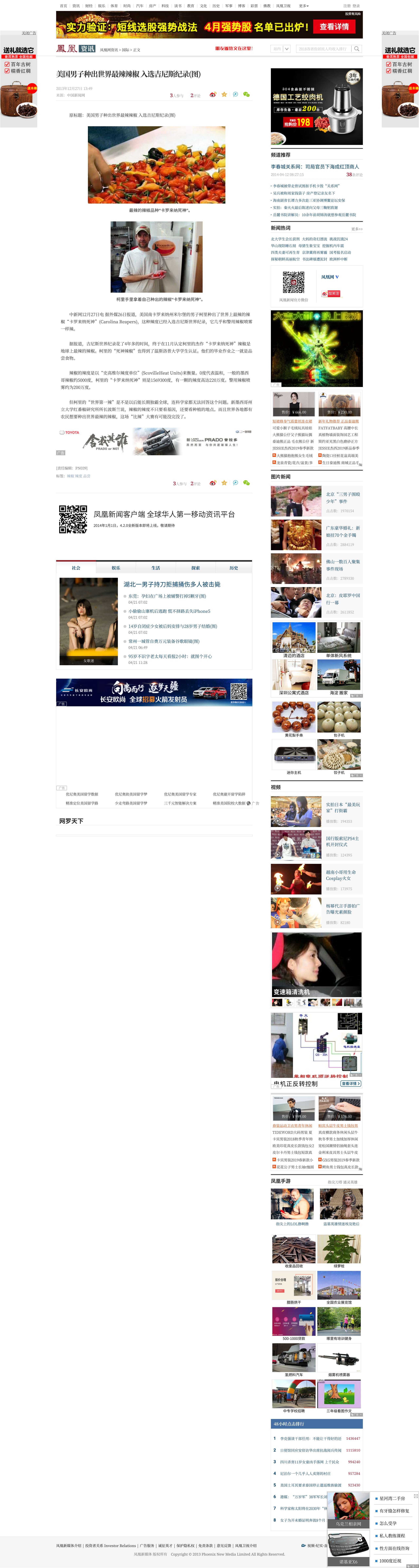 美国男子种出世界最辣辣椒 入选吉尼斯纪录.凤凰网.2023-10-18
